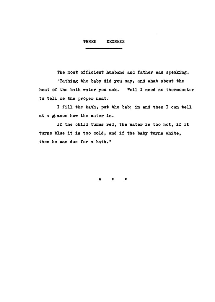 Sandy recounts to Barrowsgate the time when Alec attended an open evening at the WRI to hear a talk on how to bath your baby. His own method of determining whether the water was at the right temperature was to throw the baby in and see what colour it turned.