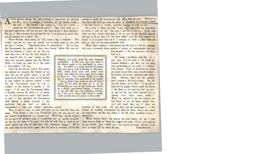 Note: The image above from the Bon Accord is barely legible but Barrowsgate wrote an article in Doric with the same message in Scottish Field in July 1938