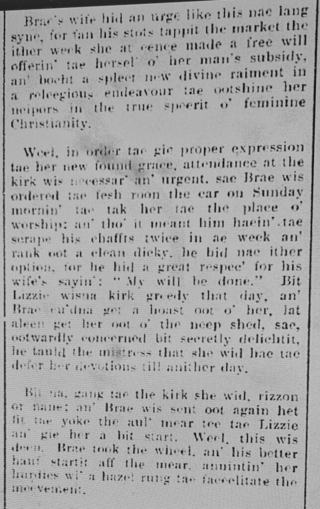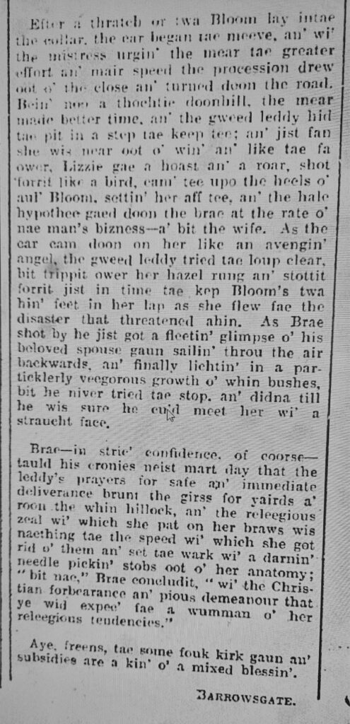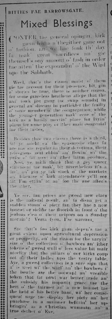 Barrowsgate reflects on the different reasons that people go to church, including to show off their new clothes. Brae’s wife was one of those, but things didn’t quite go to plan.